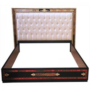 Boulle-style bed with brass and "shell" inlay. Cast bronze ornamentation.