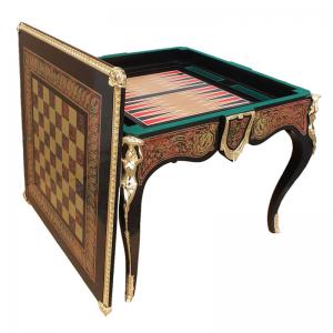 Napoleon III-style games table with Boulle inlay in "shell" and brass. Removable top. Roulette game can be inserted into the table. Cast bronze ornamentation and trim.