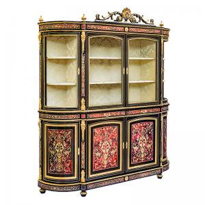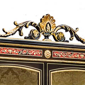 Boulle-style sideboard. Brass and "shell" inlay on ebonized background.